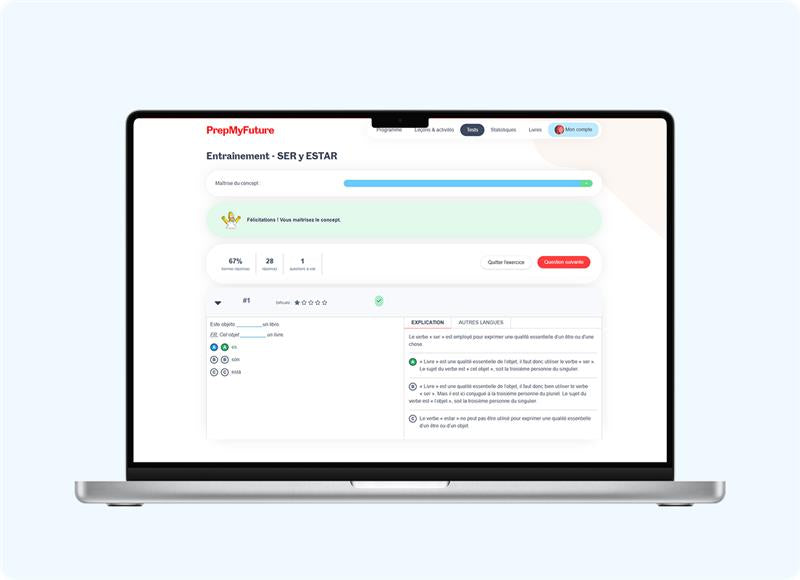 Notre technologie adaptative, combinée aux milliers d'exercices, fiches conseils et examens blancs élaborés par notre équipe d'experts, vous garantit les meilleurs.