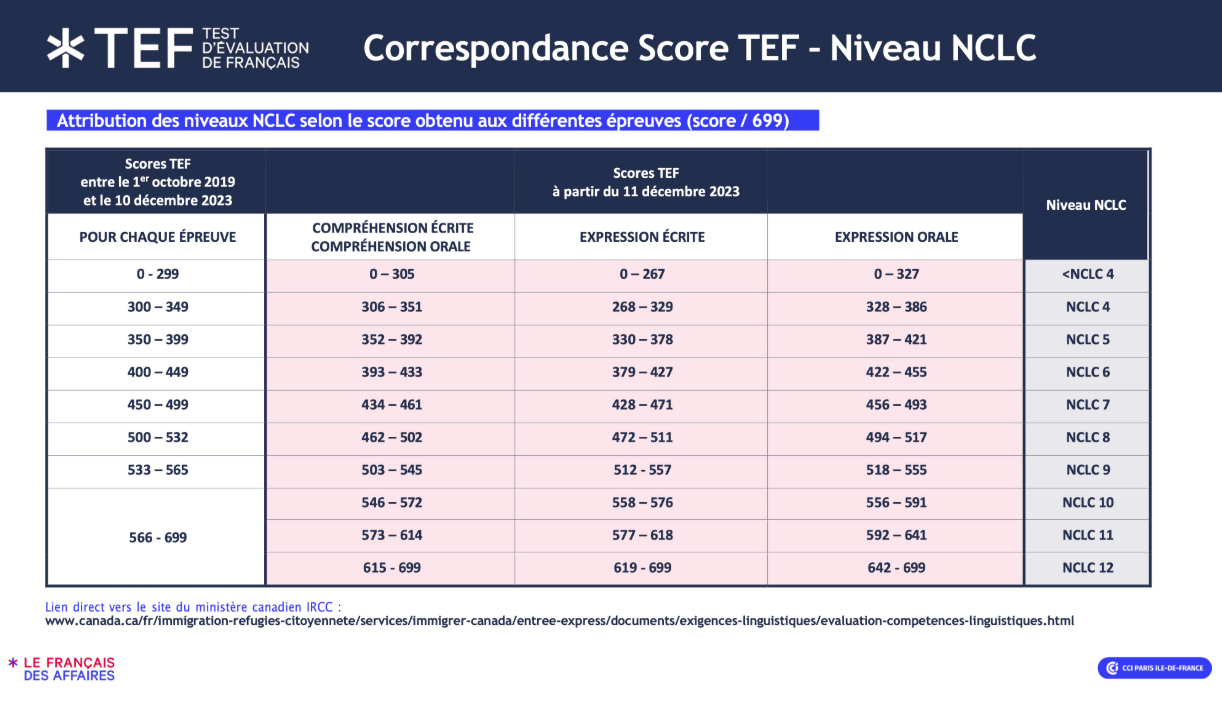 En effet, si vous validez le niveau NCLC 7 dans les quatre épreuves du test, vous pouvez obtenir :