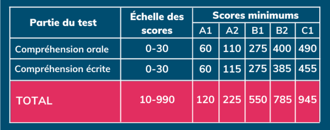 Corrélation TOEIC (Listening et Reading) avec la norme européenne CECRL