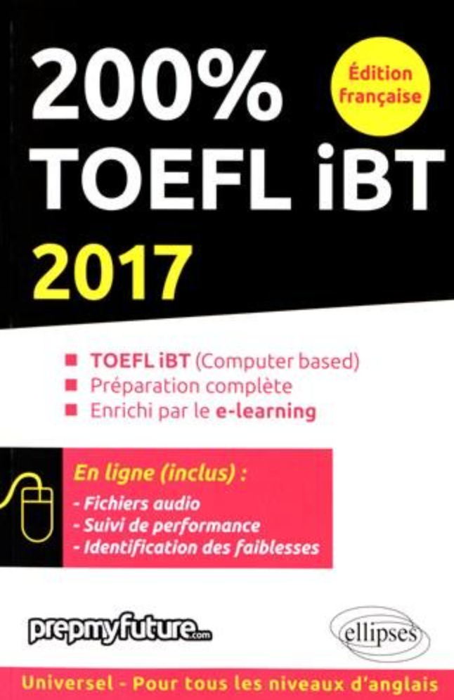 Cet ouvrage édité par Prepmyfuture en collaboration avec Ellipse se veut clair et concis en allant à l’essentiel. Son format A4 renforce sa clarté et la fluidité de la lecture. Sa force est son contenu additionnel en ligne disponible sur le site prepmyfuture.com qui vous propose une mise en condition d’examen grâce à la plateforme e-learning de l’éditeur. A l’heure du numérique, le 200% TOEFL IBT est le plus moderne des livres de préparation à ce test.