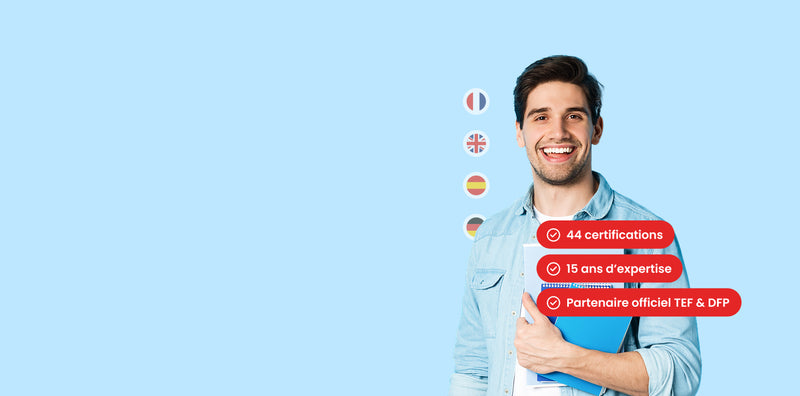 44 certifications incluant TEF, TCF, DELF, DFP, TOEIC, TOEFL, IELTS, et bien d'autres selon les besoins de vos apprenants.